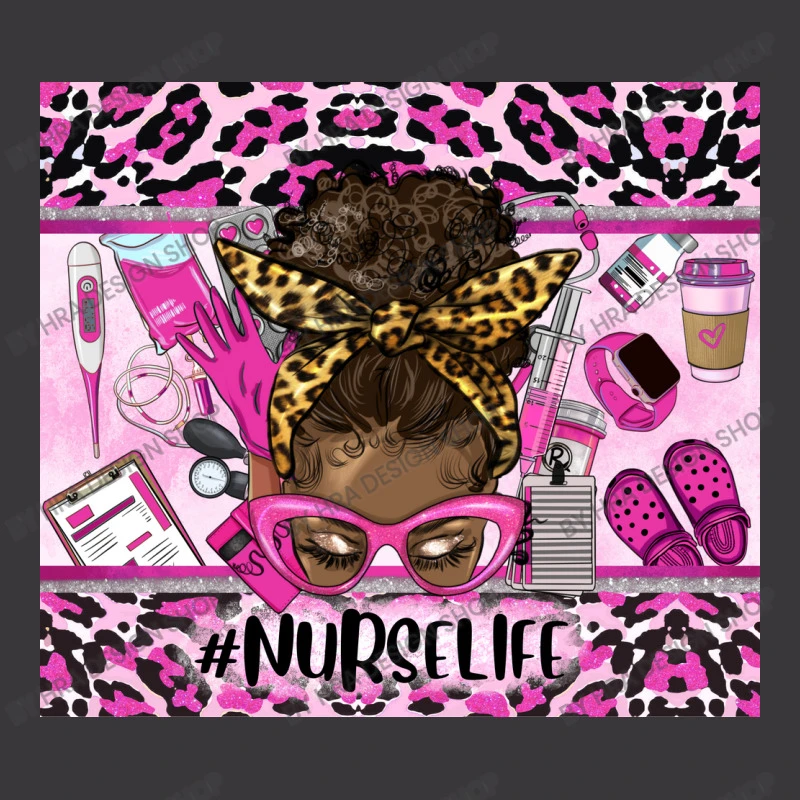 Plot Printing Consists of both Flock and Flex Print, This process transfers your artwork “Afro Messy Bun Nurse Life Hot Pink” from a special foil through an immense amount of pressure and heat. Flex images are smooth, a little plastic like and a tad bit glossy. Flock images have a fuzzy velvet-like texture and appear slightly more elevated. Think of drawing just the shadows and how that would appear without color. 3 colors plus the color of the garment itself is used to print.