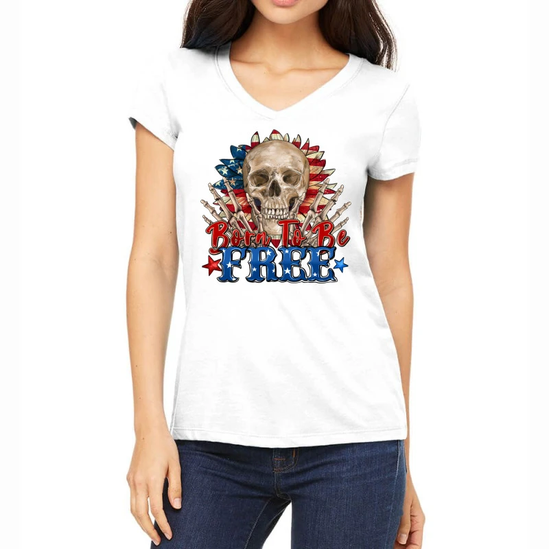 Digital printing is an amazing process that involves your artwork “Born To Be Free Skeleton” being processed by a computer and then printed directly onto the surface of your product. Digital printing is not a heat transfer or applique, as the ink directly adheres to the fabric of your shirt. Each printing process has its strengths, and our artwork team will weigh these when deciding which to use for your art.