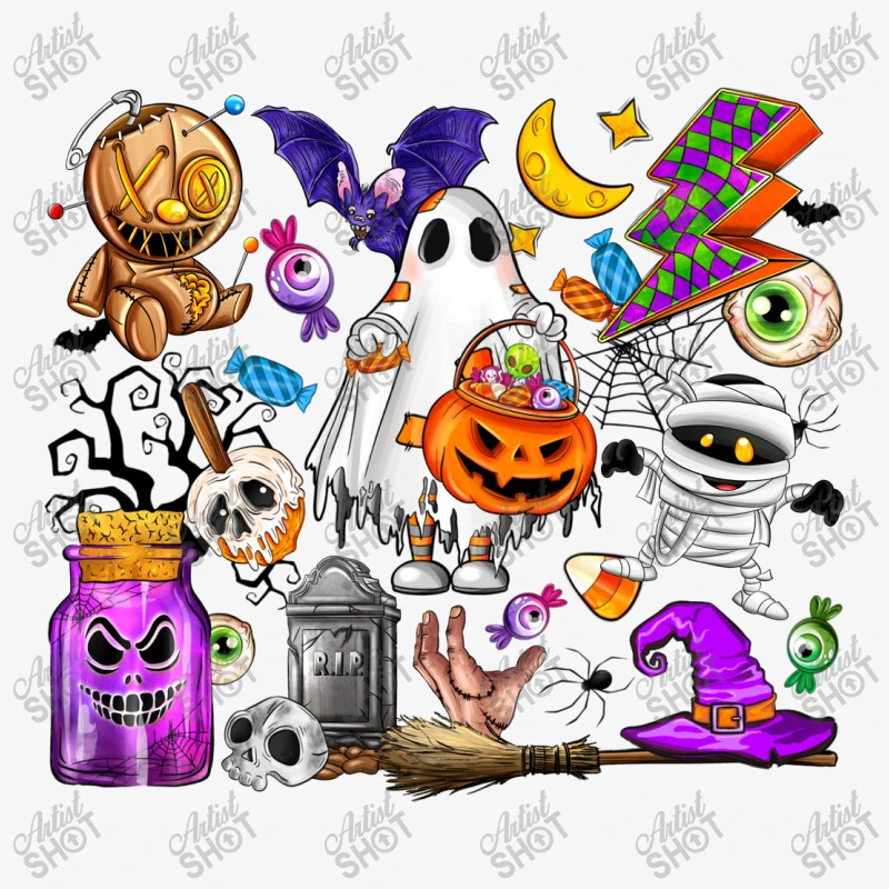 Digital printing is an amazing process that involves your artwork “Cute Halloween” being processed by a computer and then printed directly onto the surface of your product. Digital printing is not a heat transfer or applique, as the ink directly adheres to the fabric of your shirt. Each printing process has its strengths, and our artwork team will weigh these when deciding which to use for your art.