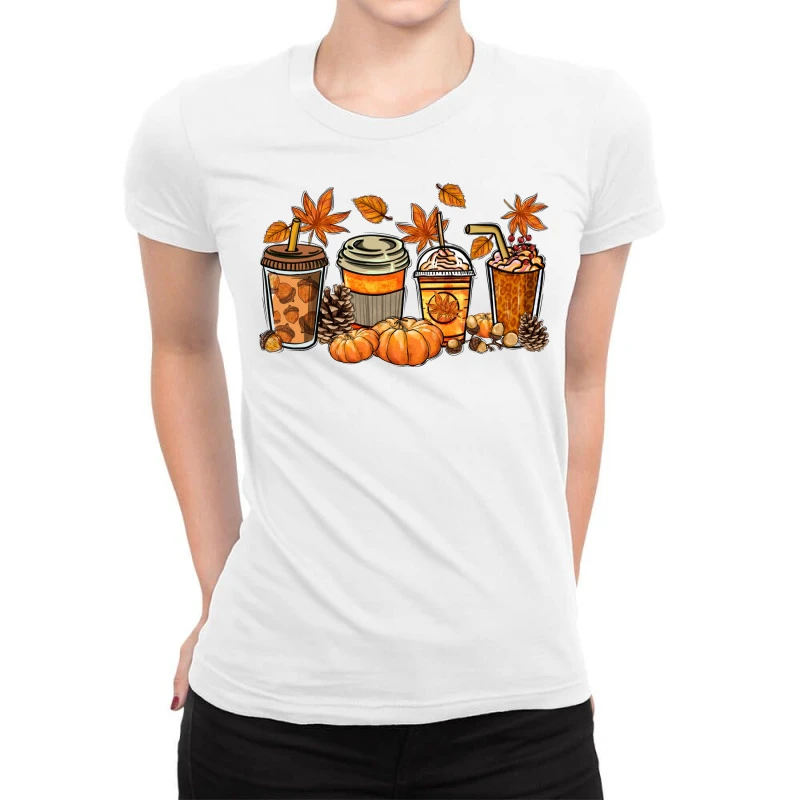 Digital printing is an amazing process that involves your artwork “Fall Coffee Cups” being processed by a computer and then printed directly onto the surface of your product. Digital printing is not a heat transfer or applique, as the ink directly adheres to the fabric of your shirt. Each printing process has its strengths, and our artwork team will weigh these when deciding which to use for your art.