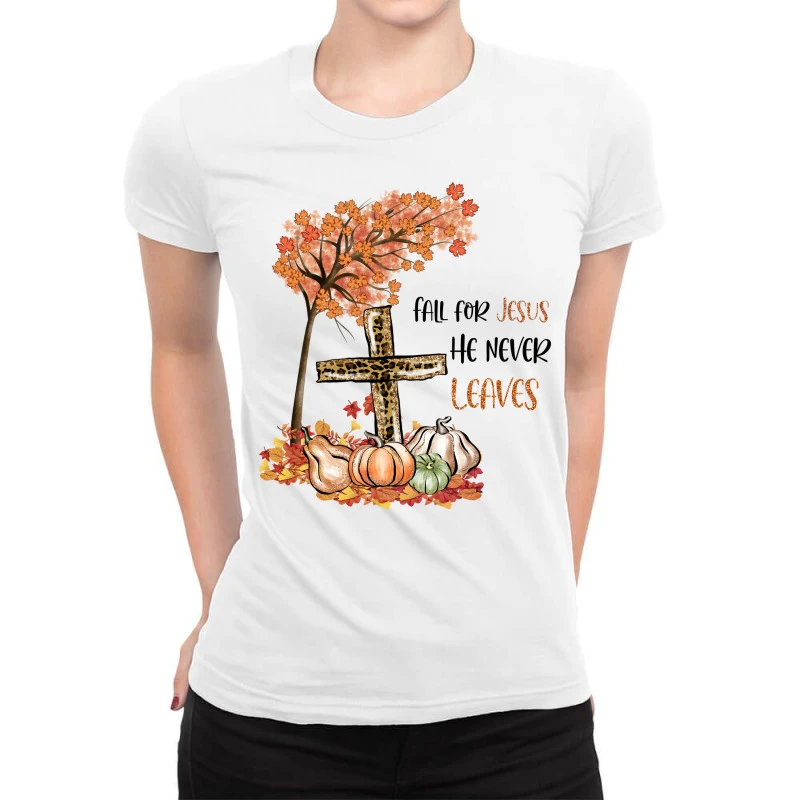 This fall for jesus he never leaves sublimat is available in a vast array of color options,
