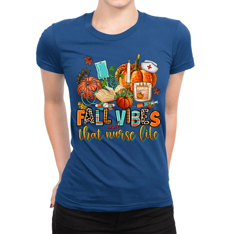 Digital printing is an amazing process that involves your artwork “Fall Vibes And That Nurse Life” being processed by a computer and then printed directly onto the surface of your product. Digital printing is not a heat transfer or applique, as the ink directly adheres to the fabric of your shirt. Each printing process has its strengths, and our artwork team will weigh these when deciding which to use for your art.