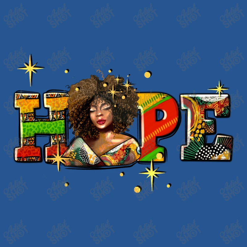 Digital printing is an amazing process that involves your artwork “Hope Juneteenth” being processed by a computer and then printed directly onto the surface of your product. Digital printing is not a heat transfer or applique, as the ink directly adheres to the fabric of your shirt. Each printing process has its strengths, and our artwork team will weigh these when deciding which to use for your art.