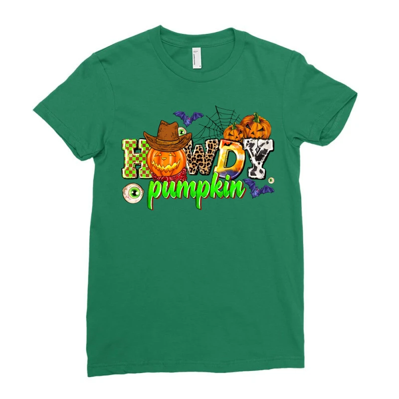 Digital printing is an amazing process that involves your artwork “Howdy Halloween Pumpkins” being processed by a computer and then printed directly onto the surface of your product. Digital printing is not a heat transfer or applique, as the ink directly adheres to the fabric of your shirt. Each printing process has its strengths, and our artwork team will weigh these when deciding which to use for your art.