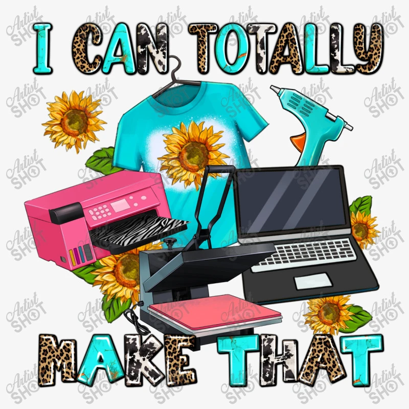 Digital printing is an amazing process that involves your artwork “I Can Totally Make That” being processed by a computer and then printed directly onto the surface of your product. Digital printing is not a heat transfer or applique, as the ink directly adheres to the fabric of your shirt. Each printing process has its strengths, and our artwork team will weigh these when deciding which to use for your art.