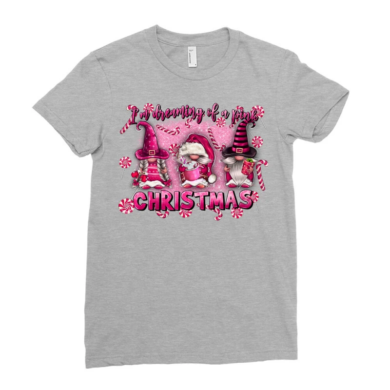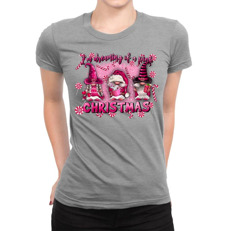 Digital printing is an amazing process that involves your artwork “I’m Dreaming Of A Pink Christmas” being processed by a computer and then printed directly onto the surface of your product. Digital printing is not a heat transfer or applique, as the ink directly adheres to the fabric of your shirt. Each printing process has its strengths, and our artwork team will weigh these when deciding which to use for your art.