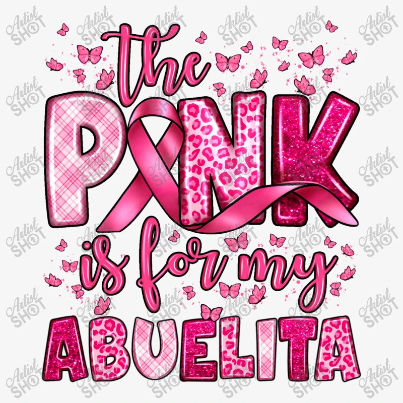 Digital printing is an amazing process that involves your artwork “I Wear Pink For My Abuelita” being processed by a computer and then printed directly onto the surface of your product. Digital printing is not a heat transfer or applique, as the ink directly adheres to the fabric of your shirt. Each printing process has its strengths, and our artwork team will weigh these when deciding which to use for your art.