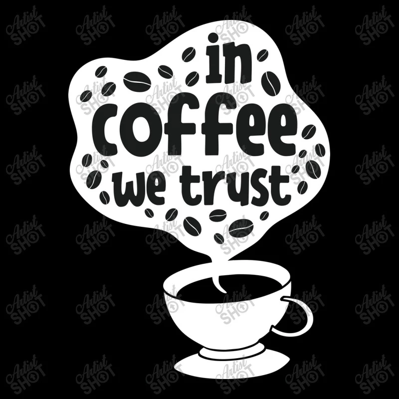 Digital printing is an amazing process that involves your artwork “In Coffee We Trust” being processed by a computer and then printed directly onto the surface of your product. Digital printing is not a heat transfer or applique, as the ink directly adheres to the fabric of your shirt. Each printing process has its strengths, and our artwork team will weigh these when deciding which to use for your art.