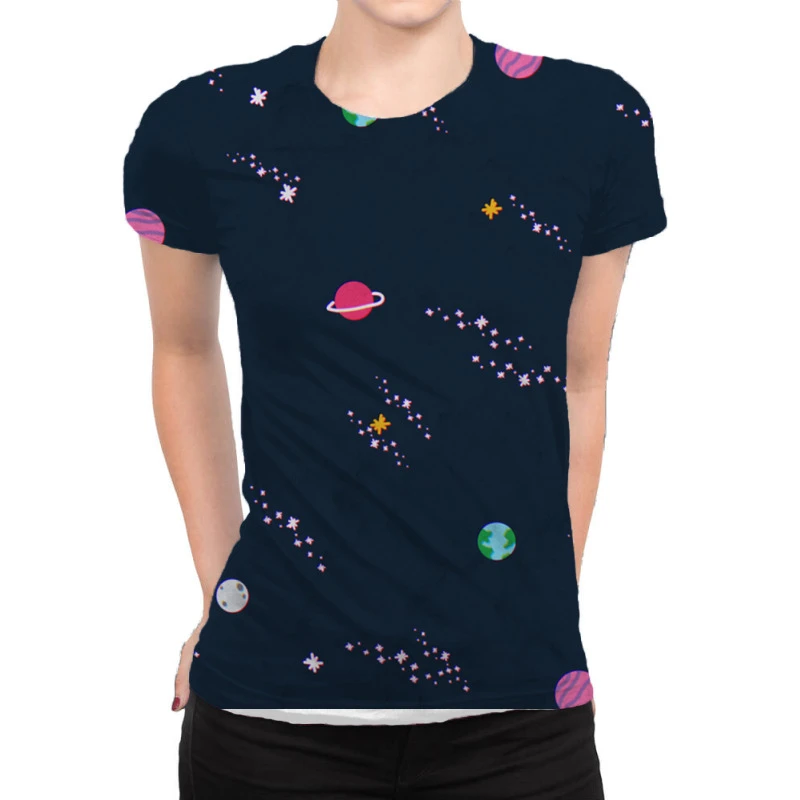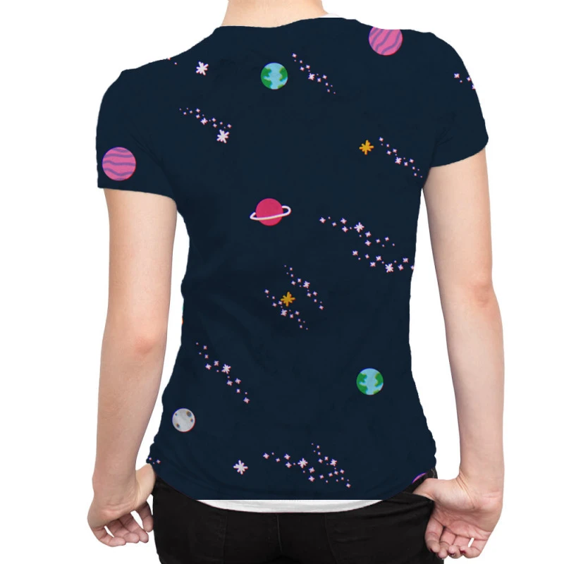 Sublimation is a process of printing to fabric (and other substances) that provides the best quality, most durable printing option. In sublimation, the inks are fused into the fabric as opposed to sitting on top of the basic such as in inkjet or screen printing. The process not only gives fabrics a softer touch after the printing, but it is also very durable. The color remains strong in outdoor lighting and after extensive washing so it’s the ideal process for All Over Women’s T-Shirt.