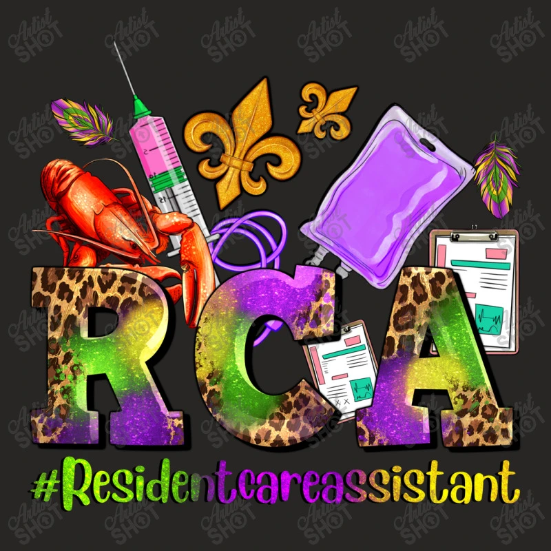 Digital printing is an amazing process that involves your artwork “Mardi Gras Rca Resident Care Assistant” being processed by a computer and then printed directly onto the surface of your product. Digital printing is not a heat transfer or applique, as the ink directly adheres to the fabric of your shirt. Each printing process has its strengths, and our artwork team will weigh these when deciding which to use for your art.