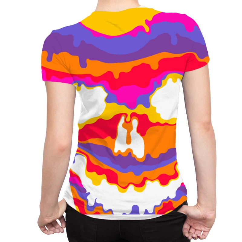Sublimation is a process of printing to fabric (and other substances) that provides the best quality, most durable printing option. In sublimation, the inks are fused into the fabric as opposed to sitting on top of the basic such as in inkjet or screen printing. The process not only gives fabrics a softer touch after the printing, but it is also very durable. The color remains strong in outdoor lighting and after extensive washing so it’s the ideal process for All Over Women’s T-Shirt.