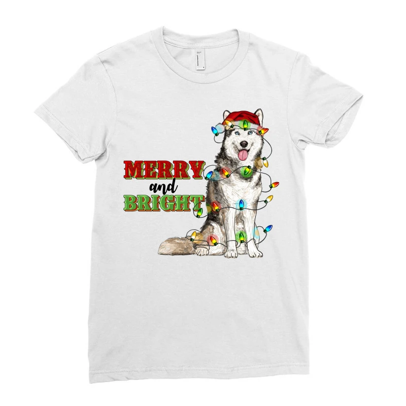 Digital printing is an amazing process that involves your artwork “Merry And Bright Husky” being processed by a computer and then printed directly onto the surface of your product. Digital printing is not a heat transfer or applique, as the ink directly adheres to the fabric of your shirt. Each printing process has its strengths, and our artwork team will weigh these when deciding which to use for your art.