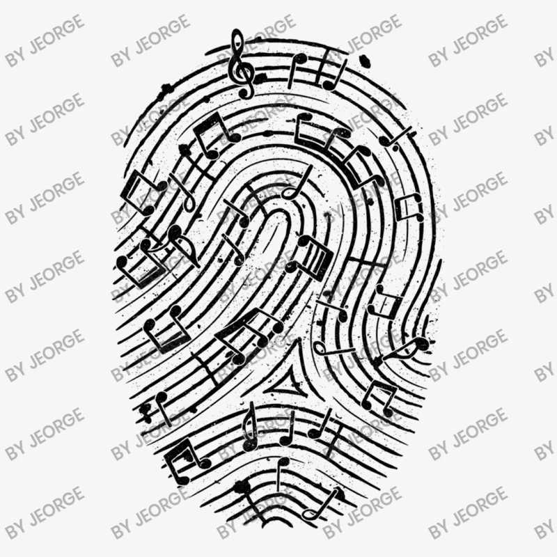 Plot Printing Consists of both Flock and Flex Print, This process transfers your artwork “Musical Fingerprint” from a special foil through an immense amount of pressure and heat. Flex images are smooth, a little plastic like and a tad bit glossy. Flock images have a fuzzy velvet-like texture and appear slightly more elevated. Think of drawing just the shadows and how that would appear without color. 3 colors plus the color of the garment itself is used to print.