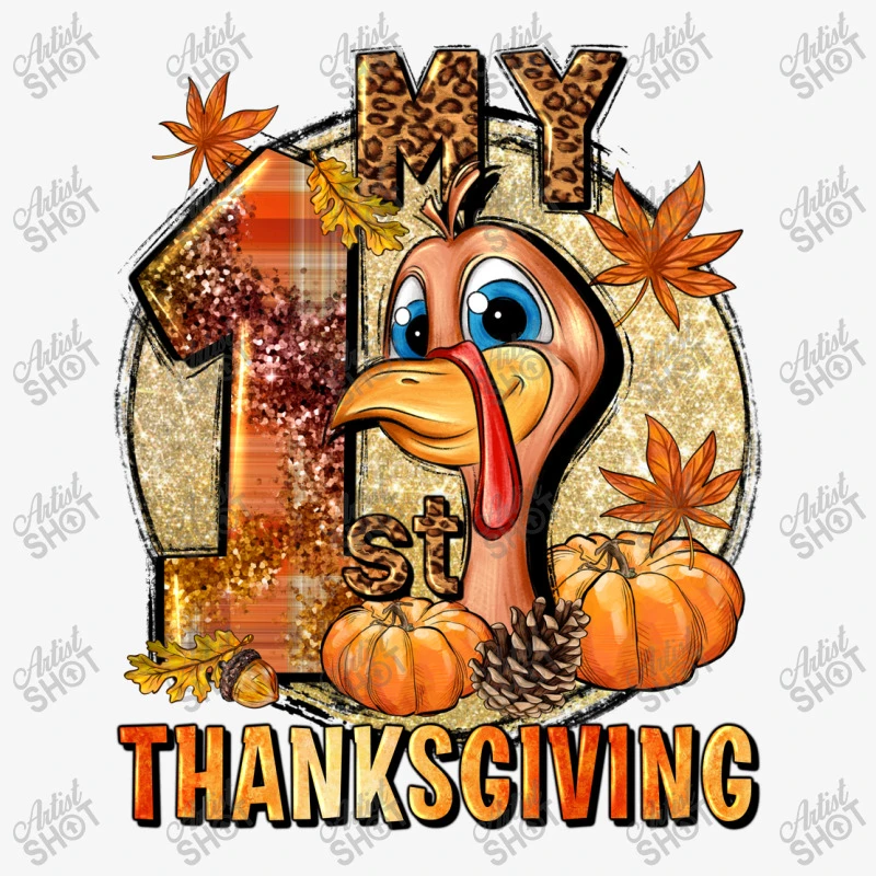 Digital printing is an amazing process that involves your artwork “My 1st Thanksgiving” being processed by a computer and then printed directly onto the surface of your product. Digital printing is not a heat transfer or applique, as the ink directly adheres to the fabric of your shirt. Each printing process has its strengths, and our artwork team will weigh these when deciding which to use for your art.