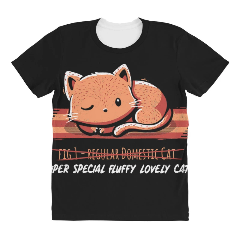 Sublimation is a process of printing to fabric (and other substances) that provides the best quality, most durable printing option. In sublimation, the inks are fused into the fabric as opposed to sitting on top of the basic such as in inkjet or screen printing. The process not only gives fabrics a softer touch after the printing, but it is also very durable. The color remains strong in outdoor lighting and after extensive washing so it’s the ideal process for All Over Women’s T-Shirt.