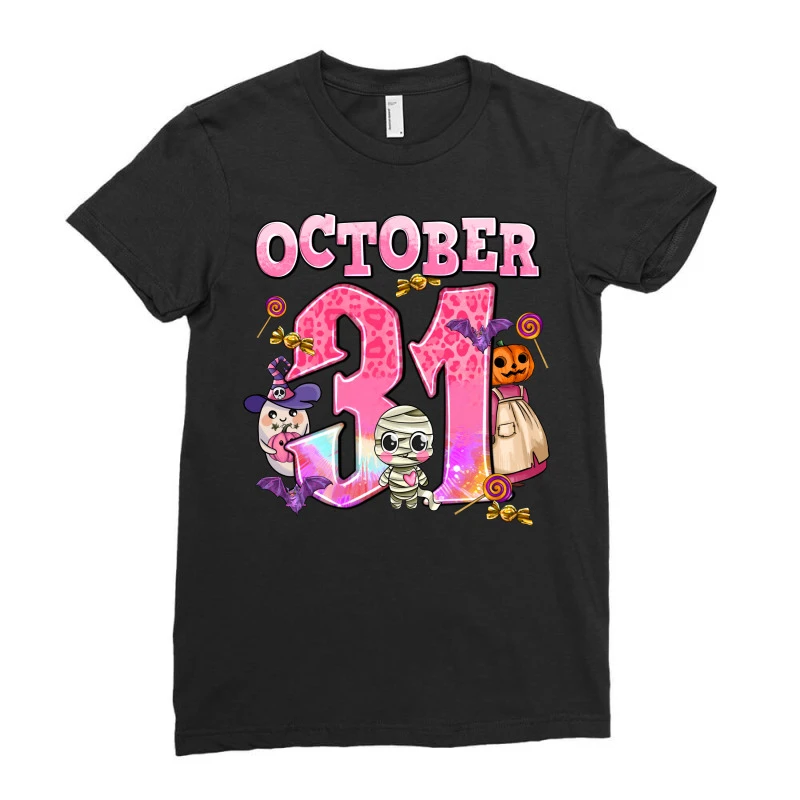 Digital printing is an amazing process that involves your artwork “October 31” being processed by a computer and then printed directly onto the surface of your product. Digital printing is not a heat transfer or applique, as the ink directly adheres to the fabric of your shirt. Each printing process has its strengths, and our artwork team will weigh these when deciding which to use for your art.