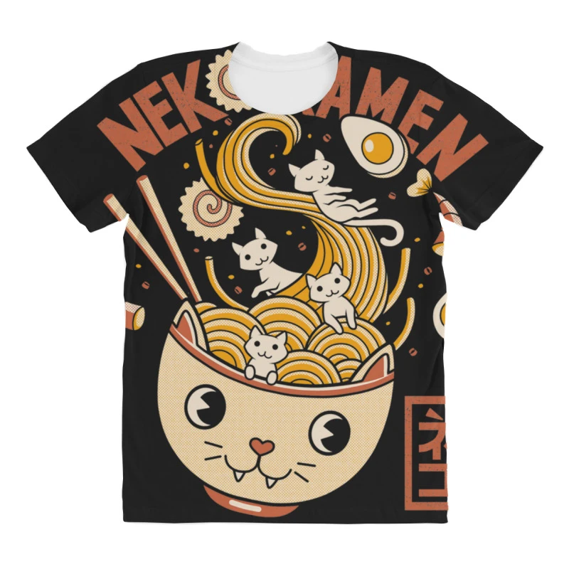 Sublimation is a process of printing to fabric (and other substances) that provides the best quality, most durable printing option. In sublimation, the inks are fused into the fabric as opposed to sitting on top of the basic such as in inkjet or screen printing. The process not only gives fabrics a softer touch after the printing, but it is also very durable. The color remains strong in outdoor lighting and after extensive washing so it’s the ideal process for All Over Women’s T-Shirt.