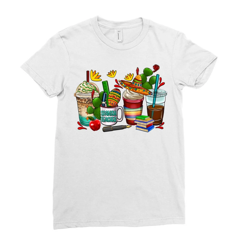 Digital printing is an amazing process that involves your artwork “Spanish Teacher Coffee Cups” being processed by a computer and then printed directly onto the surface of your product. Digital printing is not a heat transfer or applique, as the ink directly adheres to the fabric of your shirt. Each printing process has its strengths, and our artwork team will weigh these when deciding which to use for your art.