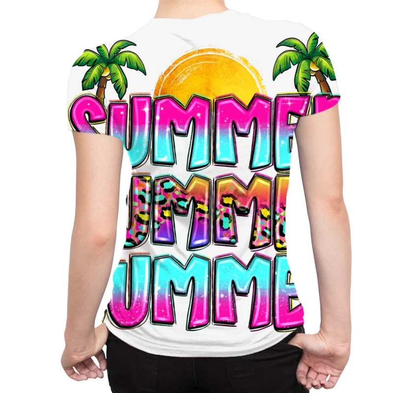 Sublimation is a process of printing to fabric (and other substances) that provides the best quality, most durable printing option. In sublimation, the inks are fused into the fabric as opposed to sitting on top of the basic such as in inkjet or screen printing. The process not only gives fabrics a softer touch after the printing, but it is also very durable. The color remains strong in outdoor lighting and after extensive washing so it’s the ideal process for All Over Women’s T-Shirt.