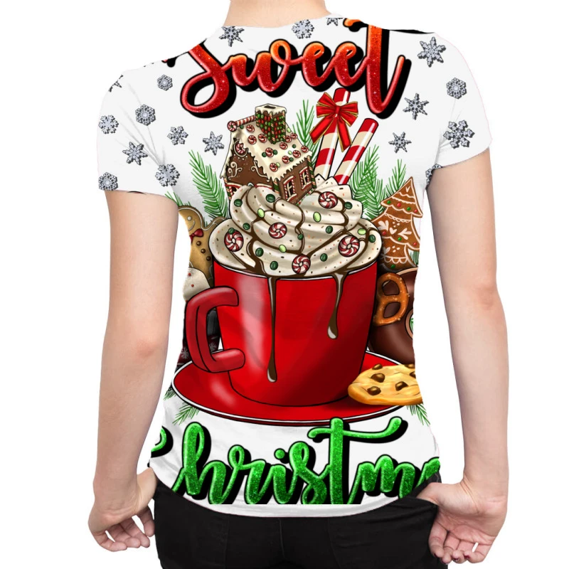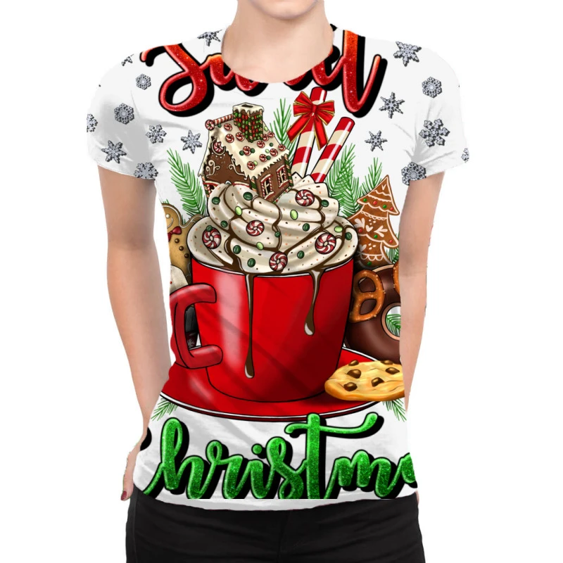 Sublimation is a process of printing to fabric (and other substances) that provides the best quality, most durable printing option. In sublimation, the inks are fused into the fabric as opposed to sitting on top of the basic such as in inkjet or screen printing. The process not only gives fabrics a softer touch after the printing, but it is also very durable. The color remains strong in outdoor lighting and after extensive washing so it’s the ideal process for All Over Women’s T-Shirt.