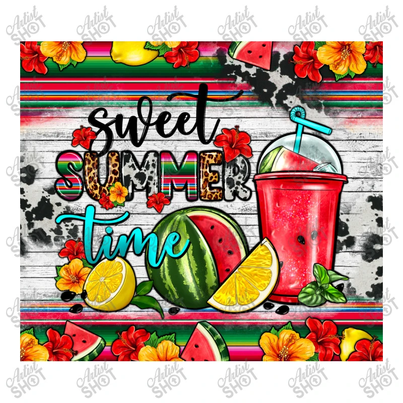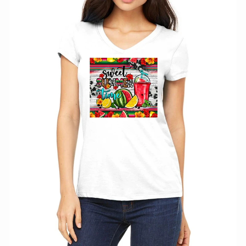 Digital printing is an amazing process that involves your artwork “Sweet Summer Time” being processed by a computer and then printed directly onto the surface of your product. Digital printing is not a heat transfer or applique, as the ink directly adheres to the fabric of your shirt. Each printing process has its strengths, and our artwork team will weigh these when deciding which to use for your art.