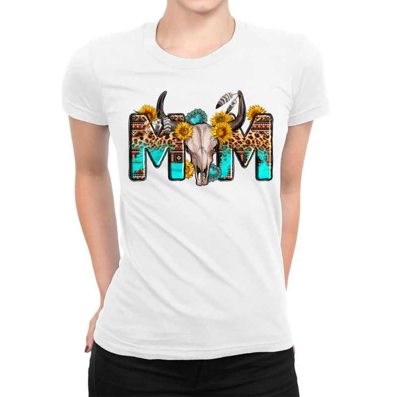 Digital printing is an amazing process that involves your artwork “Western Bull Skull Mom” being processed by a computer and then printed directly onto the surface of your product. Digital printing is not a heat transfer or applique, as the ink directly adheres to the fabric of your shirt. Each printing process has its strengths, and our artwork team will weigh these when deciding which to use for your art.