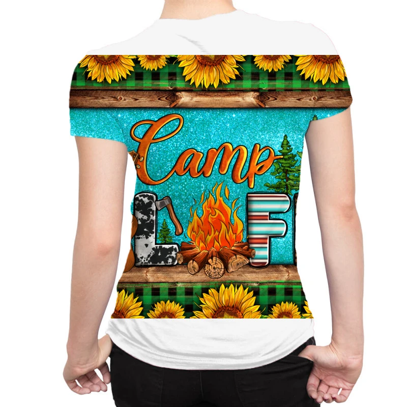 Sublimation is a process of printing to fabric (and other substances) that provides the best quality, most durable printing option. In sublimation, the inks are fused into the fabric as opposed to sitting on top of the basic such as in inkjet or screen printing. The process not only gives fabrics a softer touch after the printing, but it is also very durable. The color remains strong in outdoor lighting and after extensive washing so it’s the ideal process for All Over Women’s T-Shirt.