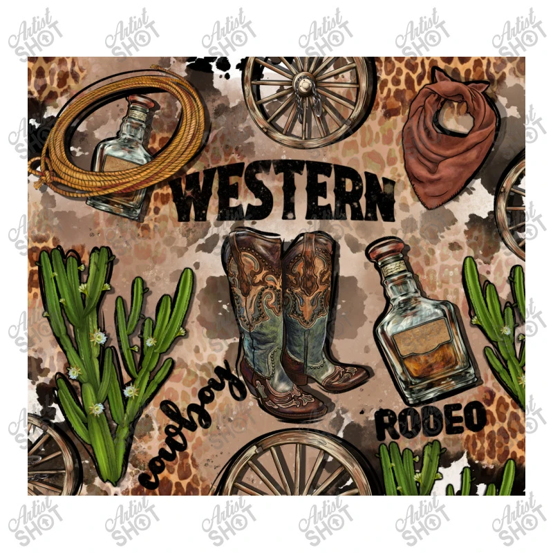 Digital printing is an amazing process that involves your artwork “Western Rodeo” being processed by a computer and then printed directly onto the surface of your product. Digital printing is not a heat transfer or applique, as the ink directly adheres to the fabric of your shirt. Each printing process has its strengths, and our artwork team will weigh these when deciding which to use for your art.