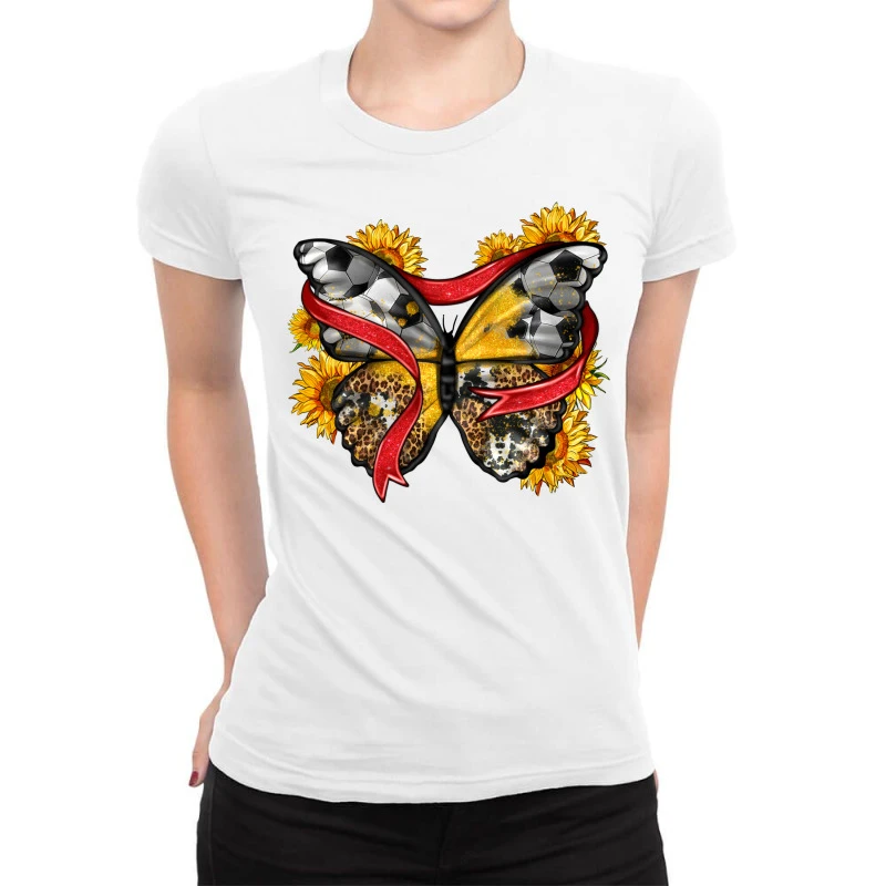 Digital printing is an amazing process that involves your artwork “Western Soccer Butterfly” being processed by a computer and then printed directly onto the surface of your product. Digital printing is not a heat transfer or applique, as the ink directly adheres to the fabric of your shirt. Each printing process has its strengths, and our artwork team will weigh these when deciding which to use for your art.