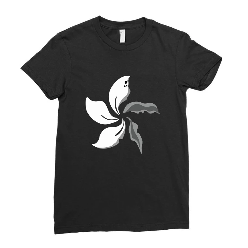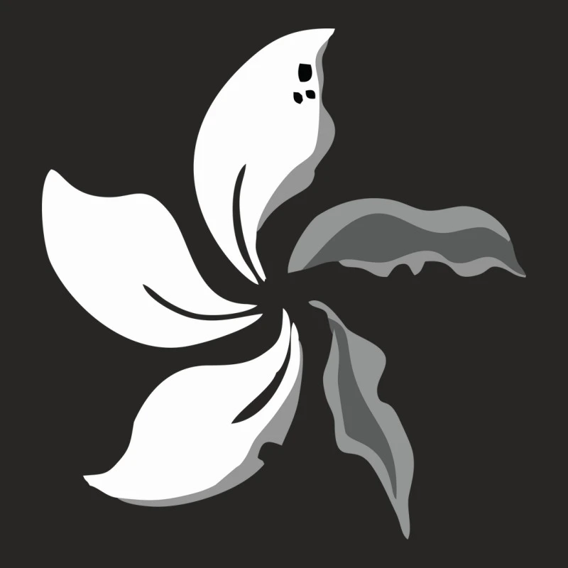 Plot Printing Consists of both Flock and Flex Print, This process transfers your artwork “Wilted Bauhinia Flag” from a special foil through an immense amount of pressure and heat. Flex images are smooth, a little plastic like and a tad bit glossy. Flock images have a fuzzy velvet-like texture and appear slightly more elevated. Think of drawing just the shadows and how that would appear without color. 3 colors plus the color of the garment itself is used to print.